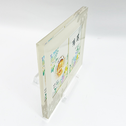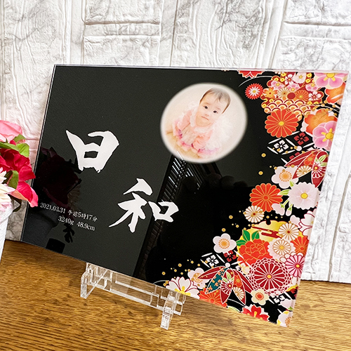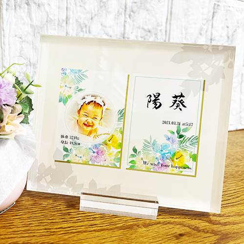 お子さまのお名前を美しく綴り、写真とともにアクリルボードに。